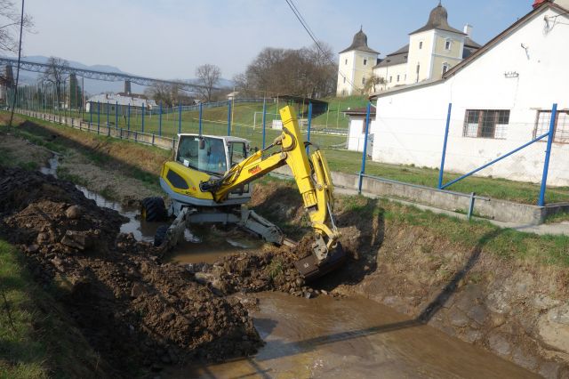 Prvá etapa odstraňovania nánosov v koryte Hanušovského potoka začala vo štvrtok minulý týždeň (4.4.2019).