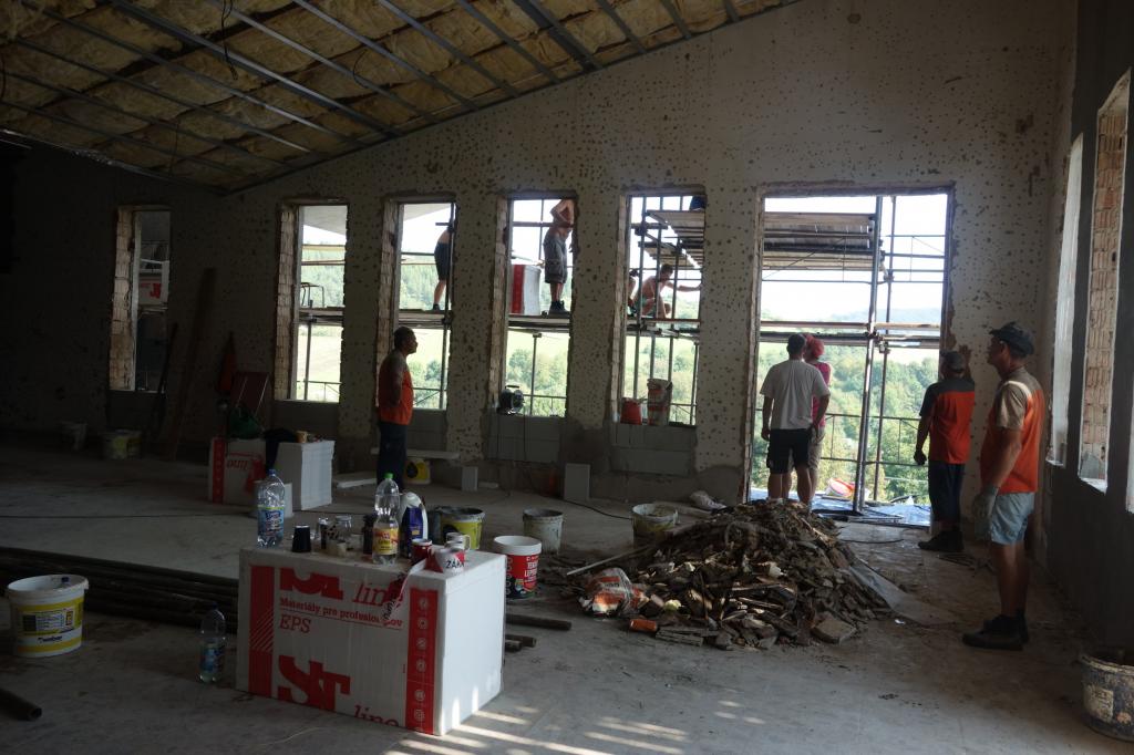 Práce na rekonštrukcii domu smútku.