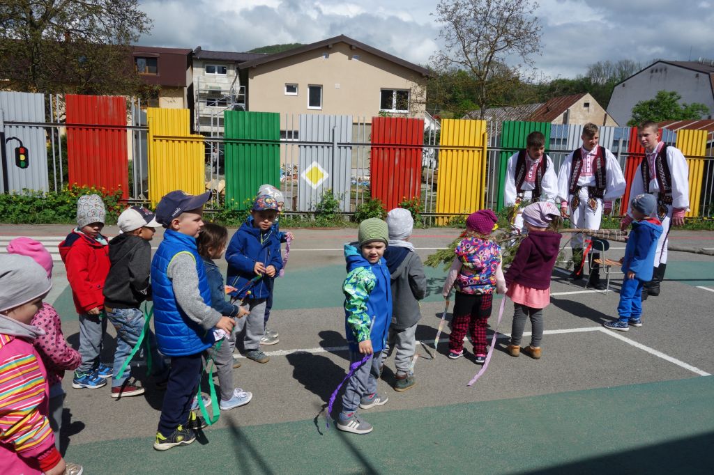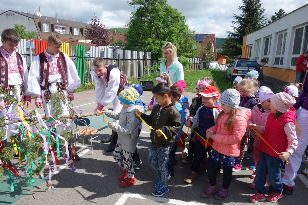 Pani riaditeľka najprv u detí povyzvedala, či vedia čo to znamená stavať máj a hneď sa ozvali malí mládenci, že sa to robí pre dievčatá.