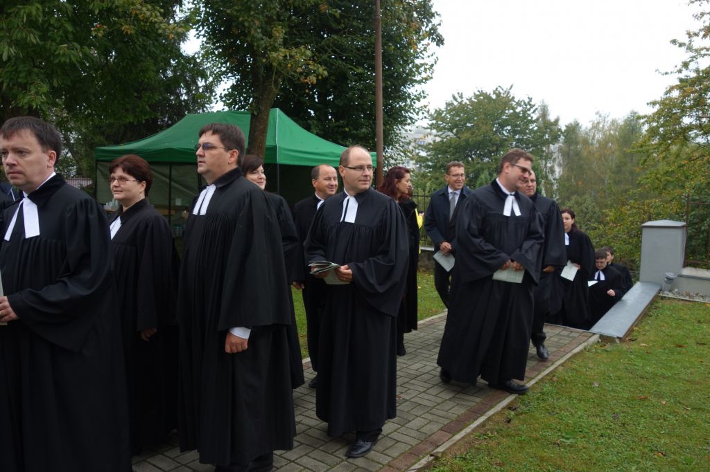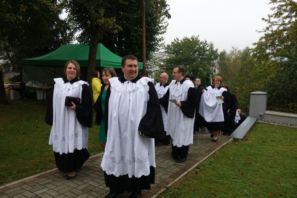 V nedeľu ráno 29. septembra 2019 riaditeľka MsKS Bc. Ľubica Tomková a prípravný štáb ECAV v Hanušovciach and Topľou už od siedmej hodiny vítali biskupov, kňazov, novokňazov a ostatných pozvaných hostí, ktorí pri tejto príležitosti navštívili naše mesto. Odtiaľ v spoločnom sprievode o 9.10 hod. odchádzali spred kaštieľa do kostola, kde o 9.30 hod. začínali Služby Božie.