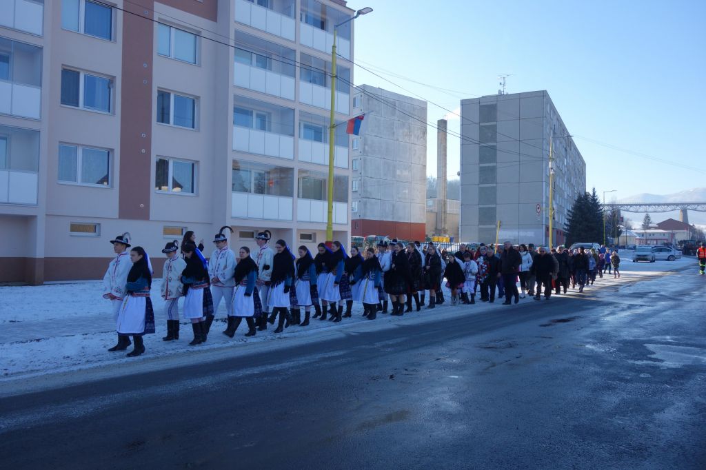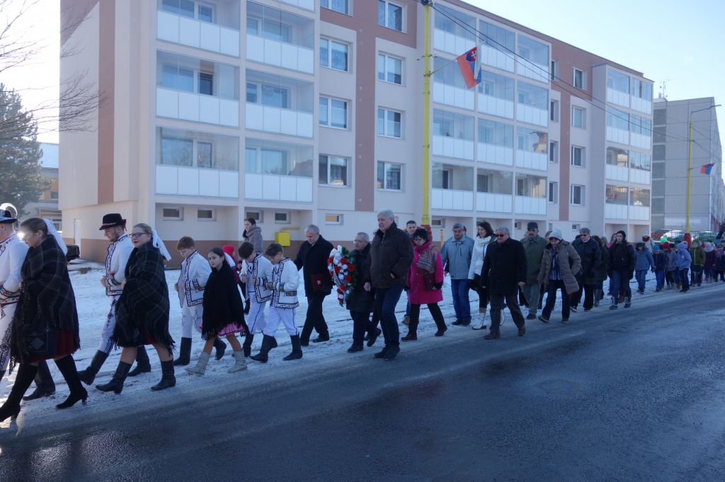 Potom sa sprievod pohol smerom k pamätníku padlým v SNP a v 2. svetovej vojne za zvukov smútočného pochodu vysielaného mestským rozhlasom.