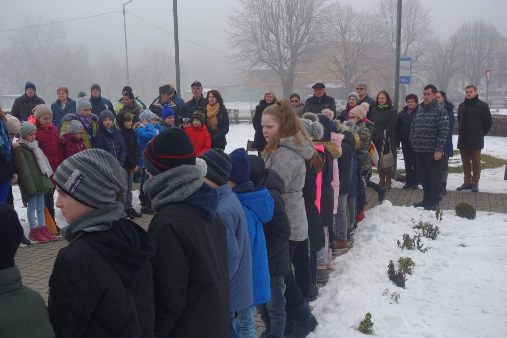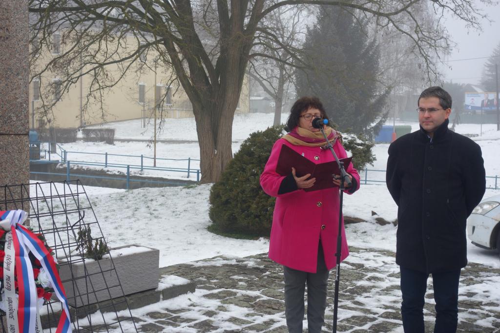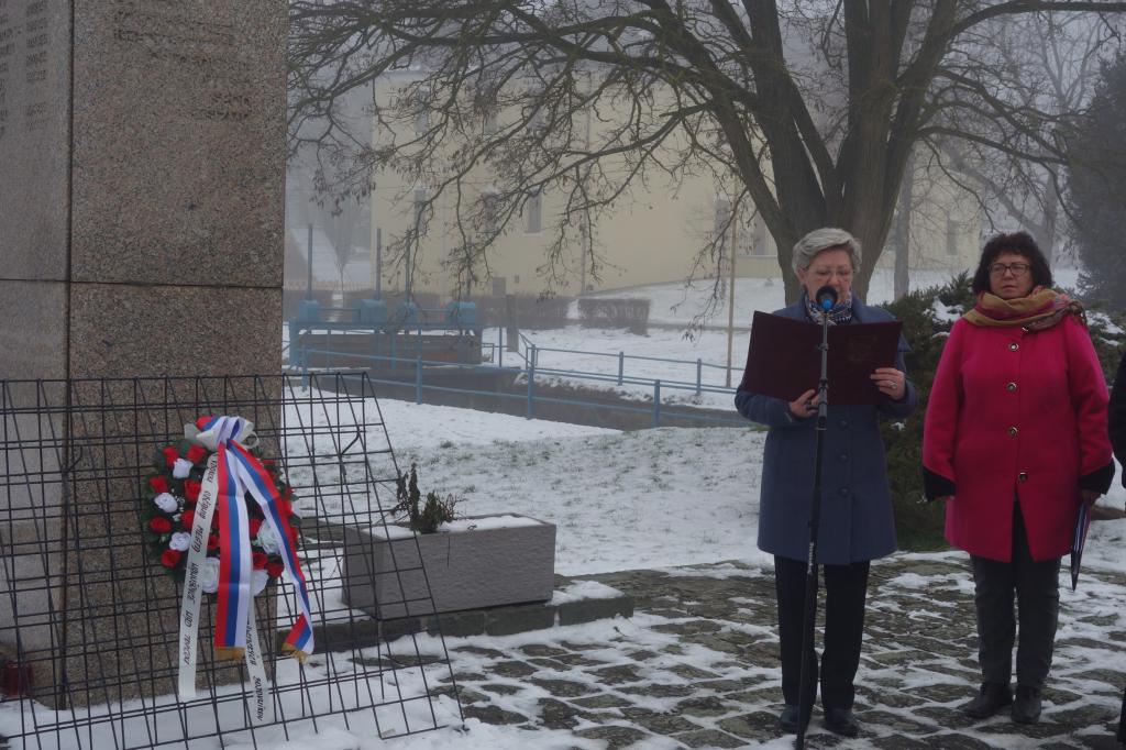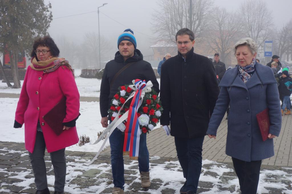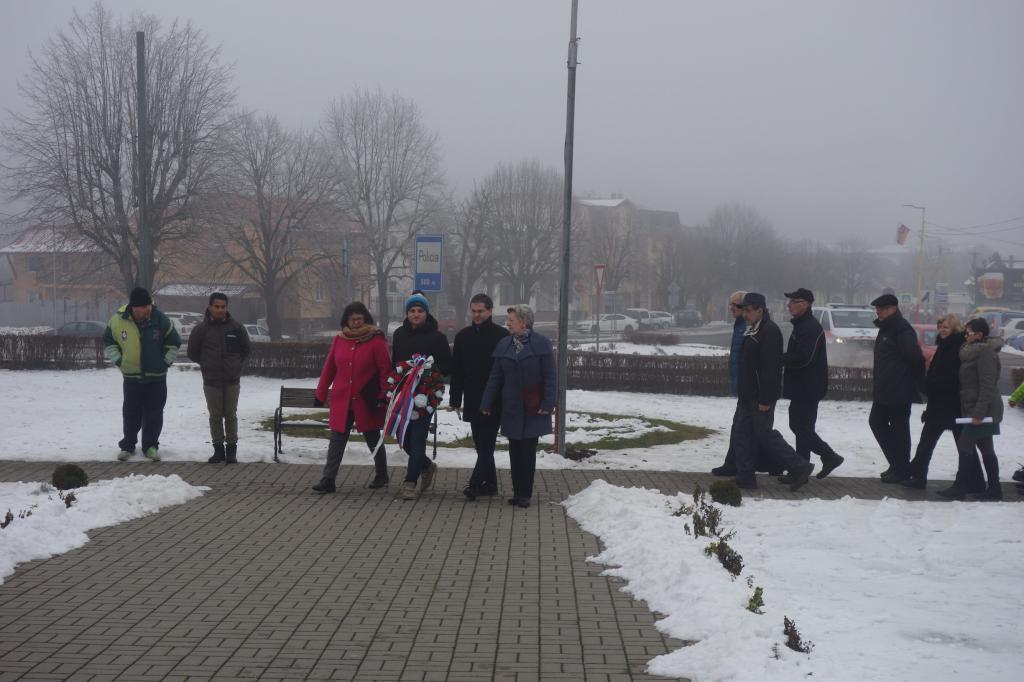 Po zvukoch štátnej hymny Slovenskej republiky mala pri pomníku vstupné slovo riaditeľka MsKS Bc. Ľubica Tomková, po nej sa prítomným účastníkom tohto pietneho aktu prihovoril primátor mesta Hanušovce nad Topľou PhDr. Štefan Straka. Za ním sa slova ešte ujala predsedníčka ZO SZPB v Hanušovciach nad Topľou Mgr. Helena Lipčáková. Týmto bol program osláv ukončený, nakoľko veľká oslava udalosti oslobodenia územia SR spod fašistickej nadvlády sa bude konať začiatkom mája tohto roku.