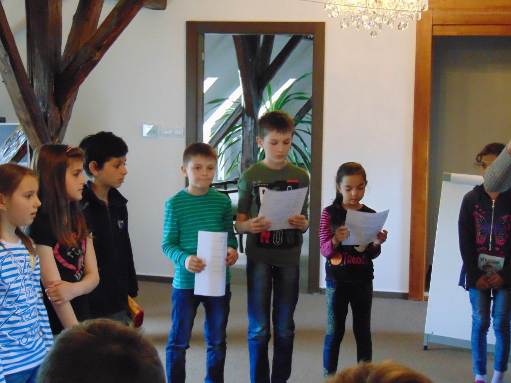 Po privítaní si zástupcovia každej zo štyroch skupín vylosovali pracovné úlohy. Prvou úlohou bolo vytvoriť básničku z dopredu pripravených rôznych slovných spojení, teda dať týmto slovným spojeniam konkrétny zmysel, ľudovo povedané dať im hlavu a pätu.