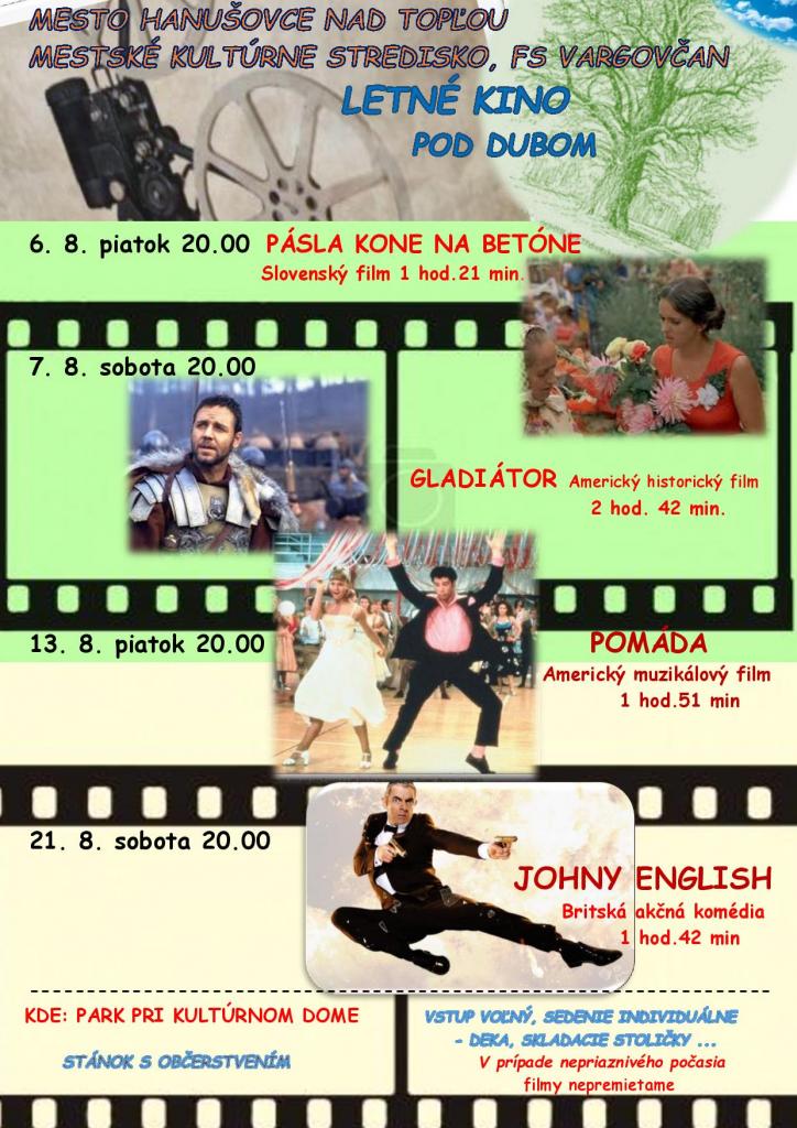 Otvárame letné kino Pod Dubom (v parku pri Dome kultúry). Srdečne Vás pozývame a prajeme príjemnú zábavu. Vstup na všetky premietania je zadarmo.