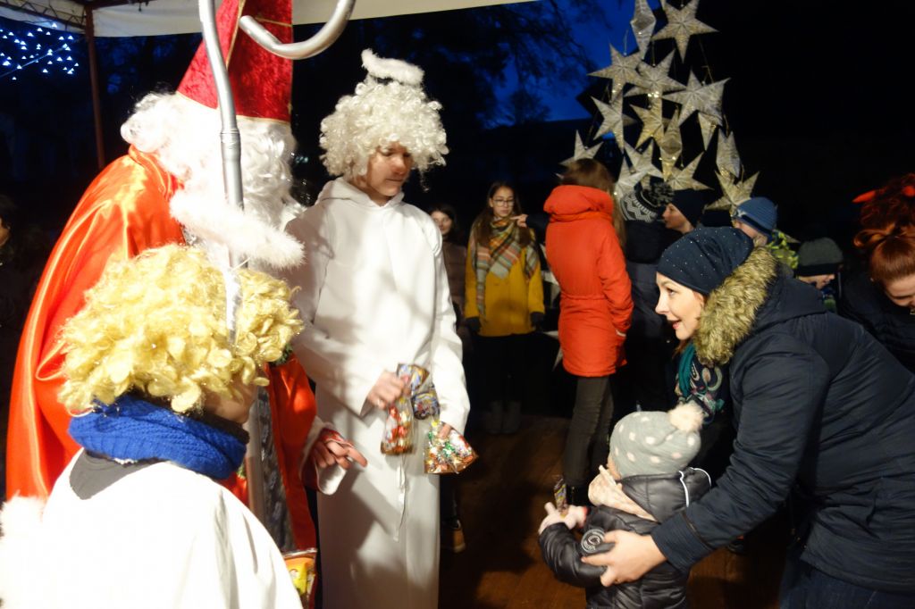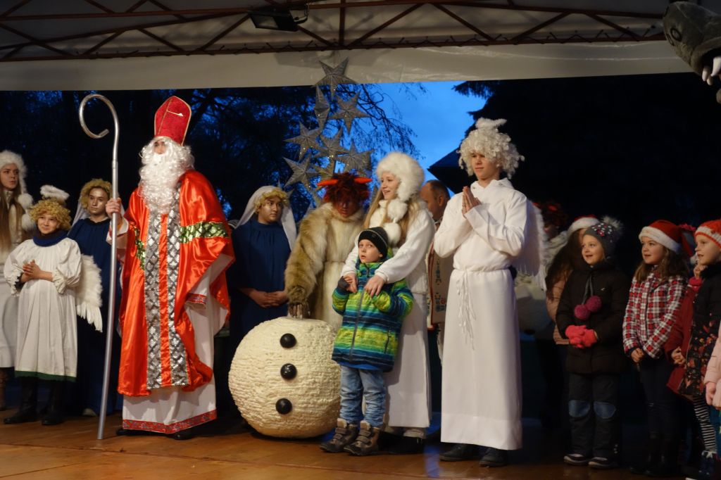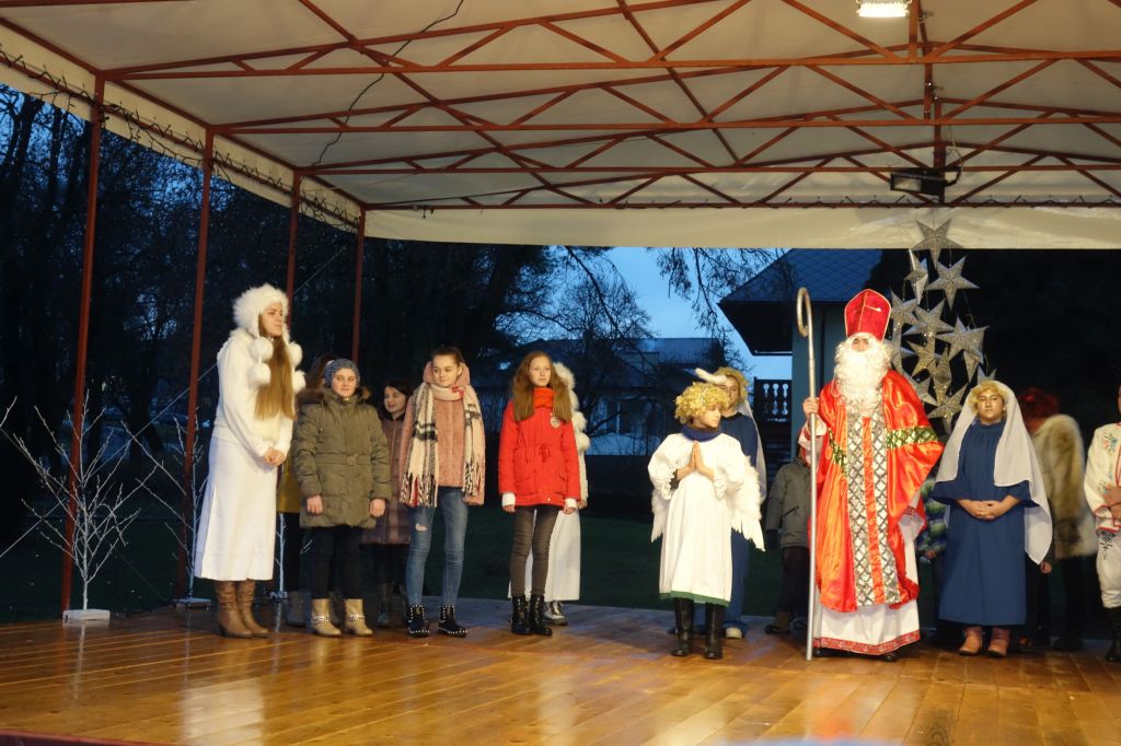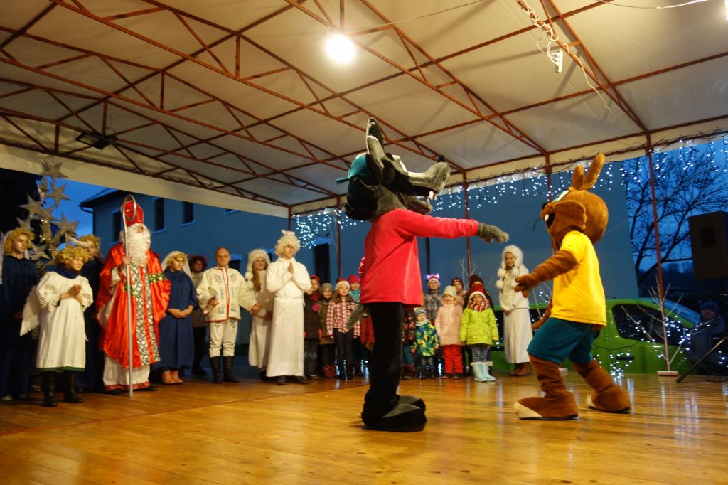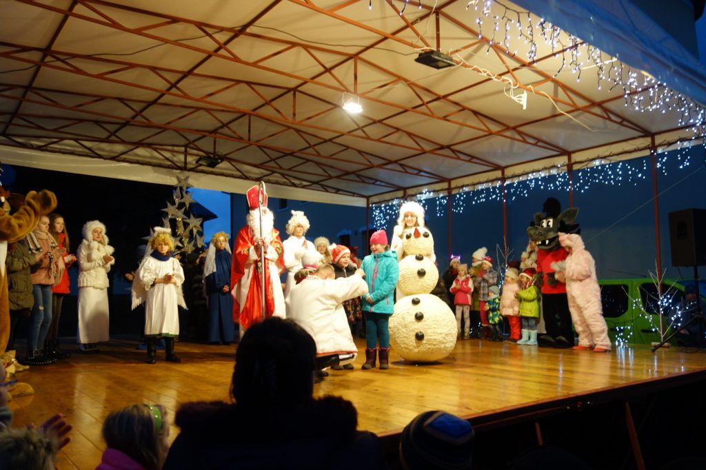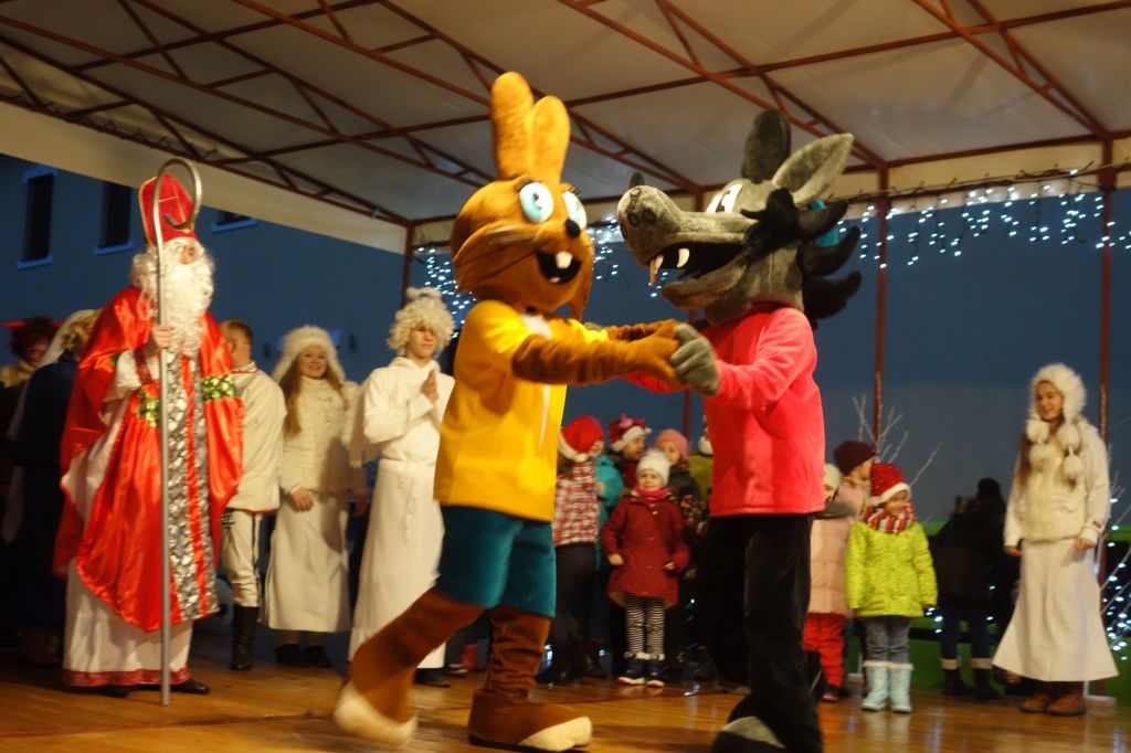 Za všetkých ho privítal Jožko Varga. Potom Mikuláš splnil sľub, ktorý avízoval na plagáte a deti voviedol do sveta rozprávok, ktoré si pamätajú aj ich rodičia a starí rodičia. Vonku pod šírym nebom, keď priali aj nebesá, že nespustili ani dážď a ani nemrzlo a nešmýkalo sa, si všetky deti prišli na svoje. Predstavil sa im Macko Uško a svoju naháňačskú exhibíciu predviedli aj Vlk so Zajacom. Vystriedali ich deti so svojimi pesničkami a básničkami a potom samozrejme Mikuláš už iba rozdával a rozdával a rozdával štedro zo svojich plných košov.