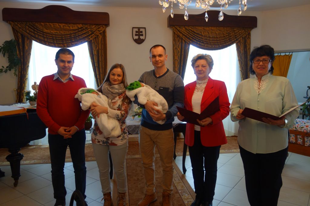 Na oficiálne uvítanie do Malého kaštieľa doniesli svoje ratolesti rodičia Lukáš a Patrícia v sprievode starých rodičov oboch malých bračekov.