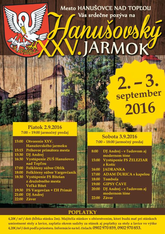 Mesto Hanušovce nad Topľou oznamuje záujemcom o predaj na hanušovskom jarmoku, že